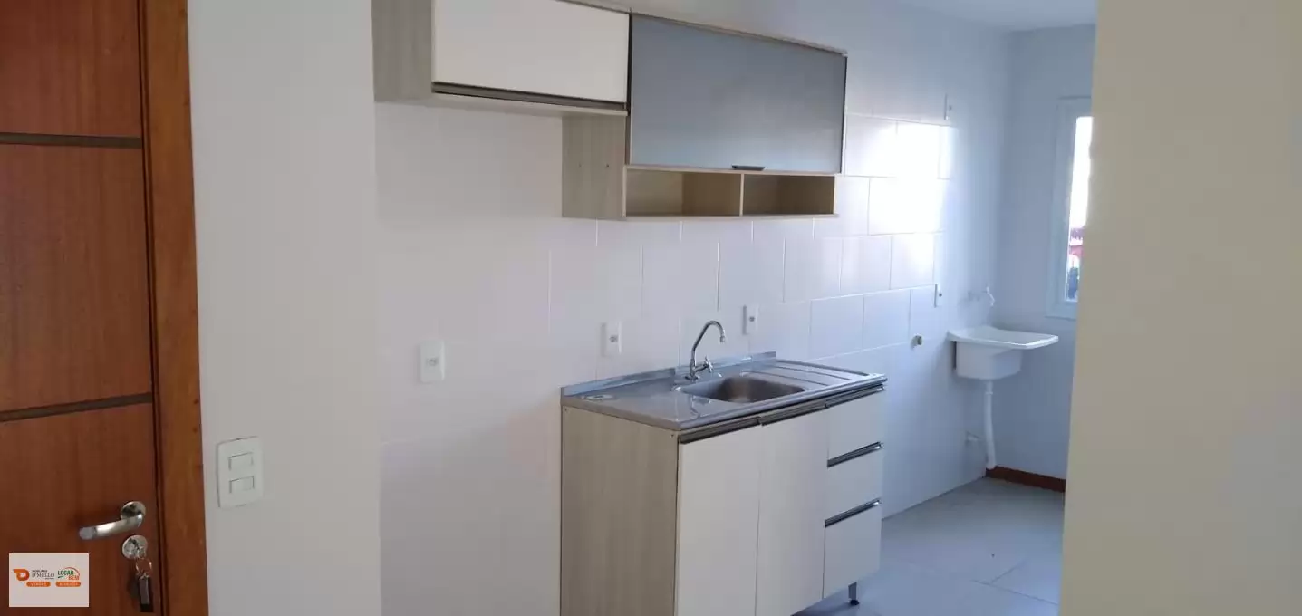 Lindo Apartamento térreo com dois dormitórios, sala, cozinha com móveis, banheiro completo, sacada, vaga de garagem, portão eletrônico, academia, sala de cinema, sala de jogos, brinquedoteca, correio eletrônico, no Bairro Fundos, Residencial Palácio de Sintra.